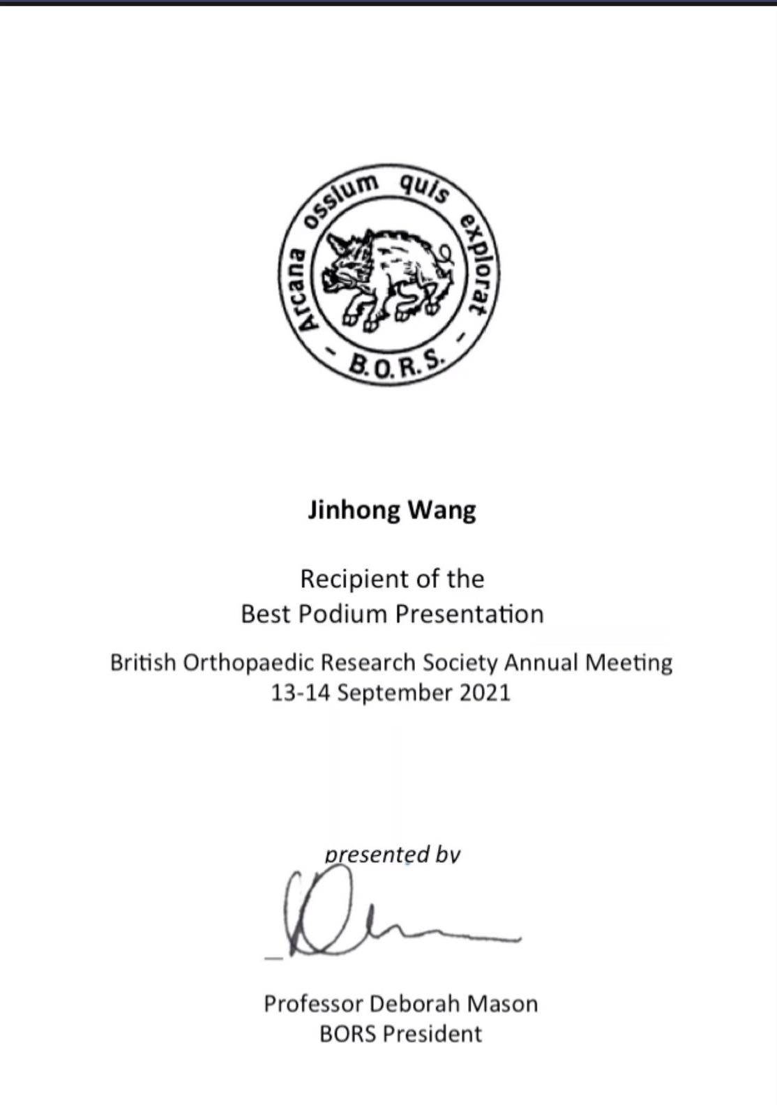 British Orthopaedic Research Society (BORS) Annual Meeting Presentation